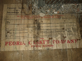 We also found a piece of cardboard (also acting a shim) that had a shipping label the Peoria Casket Co to the Sedgwick Funeral Home. Really cool stuff! We have long known that our house operated as a funeral home for about 40 years. 1938 would have been the very early years of the business.